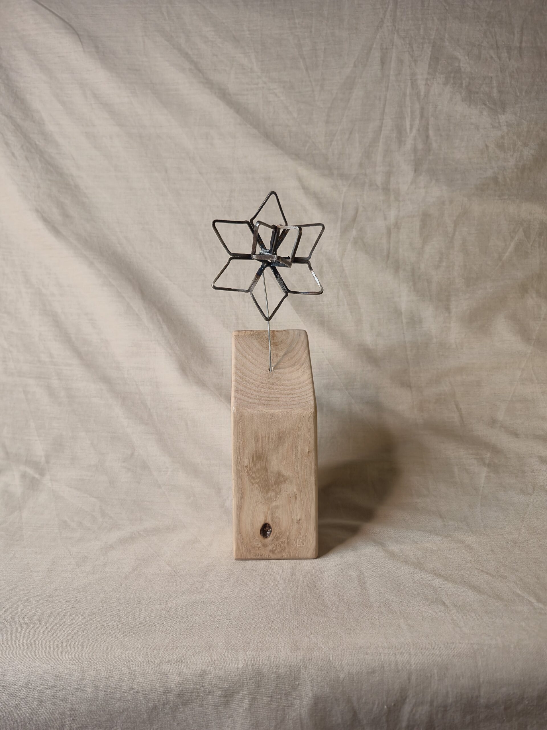Pensé comme un objet sculptural à part entière, cette création sublimera votre intérieur. Elle apporte une touche poétique et contemporaine à l’espace, entre force du métal et douceur du bois.